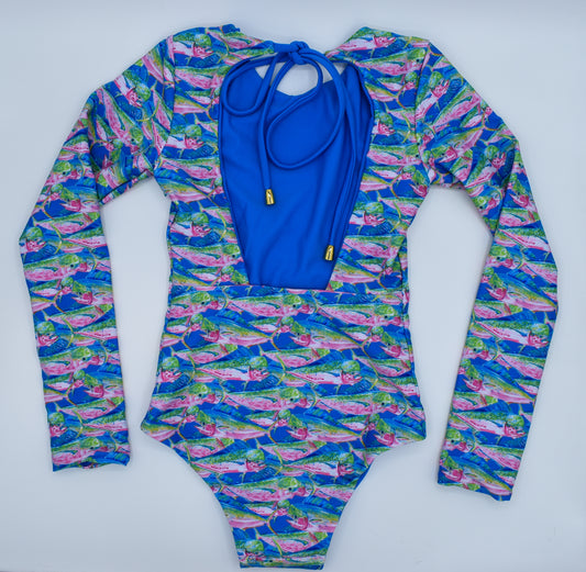 Bright, bold, and made for life on the water — the Mahi Tide Collection is inspired by the electric colors of mahi mahi cutting through blue water under a summer sun. Featuring a vibrant mix of blue, green, pink, and yellow, this print captures the energy of offshore days, sandbar afternoons, and salty memories made with your crew.