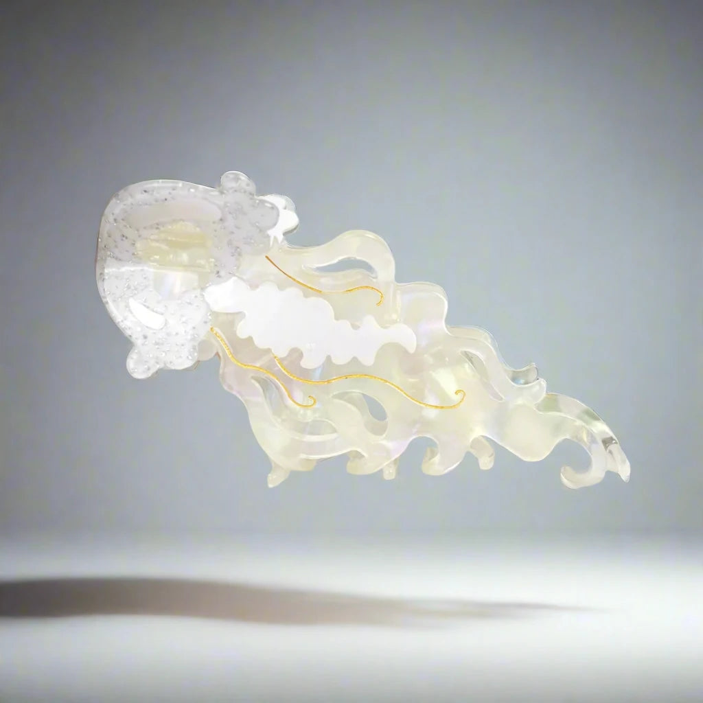 Crafted to provide a secure and comfortable hold, the White Jellyfish Claw Clip effortlessly enhances any hairstyle while adding a touch of coastal charm. Ideal for both everyday wear and special occasions, this clip brings a hint of marine magic and sophisticated elegance to your look.