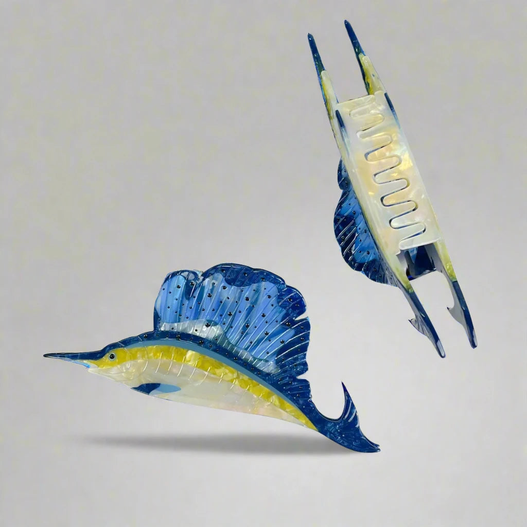 Crafted for both style and functionality, this clip offers a secure hold while adding a touch of maritime elegance to your look. Perfect for a day on the water or as a statement piece for any occasion, the Sailfish Claw Clip is a tribute to the adventurous spirit and a beautiful addition to your accessory collection.